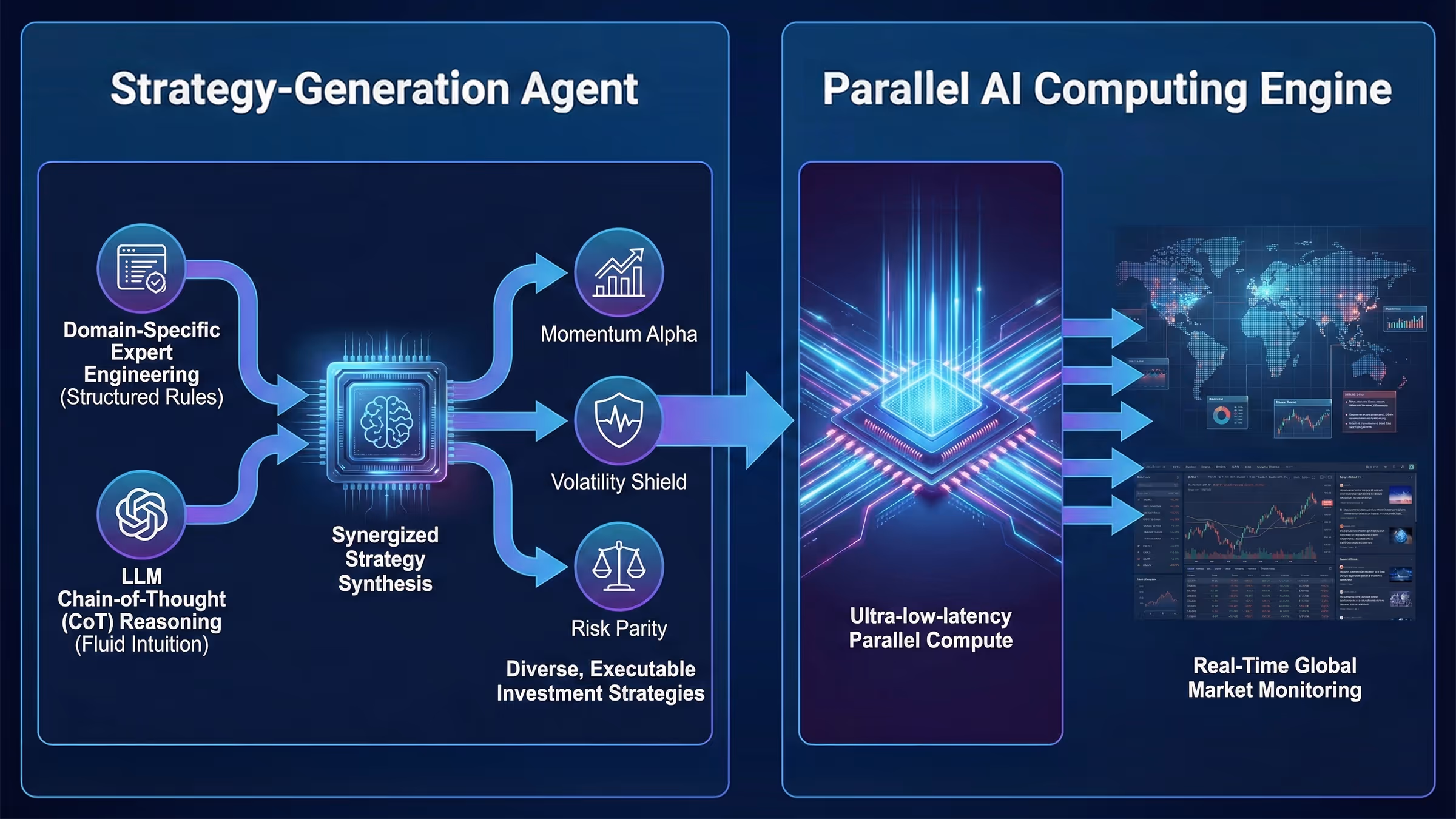 Synergizes domain-specific expert engineering with LLM Chain-of-Thought (CoT) reasoning to synthesize diverse, executable investment strategies.